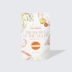 Black tea, roasted mate, rooibos, coconut chips, anise seeds, coconut chai extract, maca, black pepper, cinnamon, chaga, fenugreek, allspice.